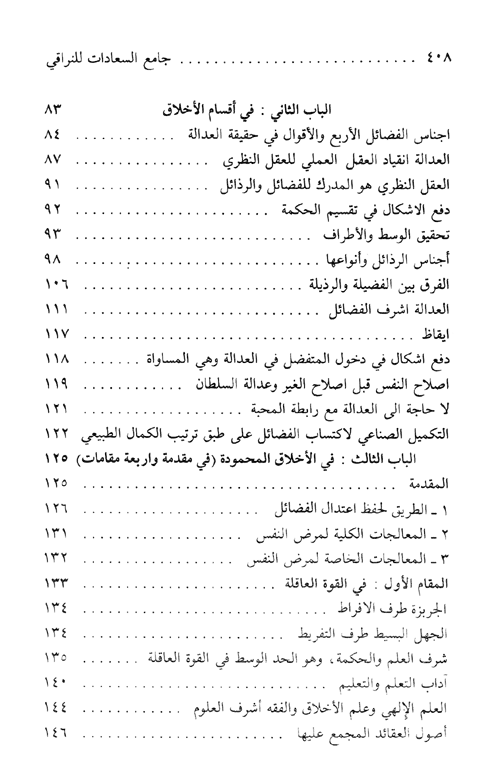 وذكر كل قوة ما يتعلق بها من أجناس الفضائل والرذائل منفردة ومنضمّة إلى الأخرى. ثم ذكر أنواعها واستقصى ذكر الأنواع مطبقاً على كل نوع نظرية الوسط والأطراف، فجاء في استقصائه وإلحاقه كل فضيلة ورذيلة بالقوى التي تتعلق بها، بما لم يجيء به غيره ولم يسبقه إليه أحد. وهذه أهم ناحية فنية في الكتاب، وفتح جديد في تحقيق منشأ حدوث خلق الفضيلة والرذيلة، لو اتفق لغيره أن يترسم خطاه، ويتم ما فتحه من هذا الباب من التحقيق، لتقدم على يديه علم الأخلاق كبيراً. إقرأ المزيد
