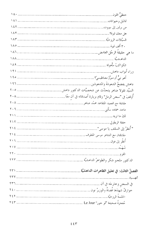 نبذة نيل وفرات:يضم الكتاب ما جاء في جريدة الديار عن الدكتور داهش وذلك في باب "الملف" المخصص للعقائد الفكرية والسياسية والدينية في لبنان. وهو ملف بلغ من الضخامة حجماً تجاوز أربعين حلقة في جريدة الديار (من 1998/11/18 إلى 1999/1/18). والدكتور داهش وحسب ما يراه اسكندر شاهين صاحب هذا الكتاب هو رجل ...صاحب عقيدة إنسانية روحية قام بأعمال غير مألوفة لا يجوز الاستهانة بها أو الوقوف منها موقف اللامبالاة. وهو أيضاً أديب غزير الإنتاج ينمو في أدبه منحى مثالياً إصلاحياً. وفضلاً عن ذلك كله، فقد كان شغوفاً بالفنون الجميلة دؤوباً على جمع آثارها، خلف متحفاً فنياً يقوم الآن في قلب مدينة نيويورك ولقد رأى القائم على تحرير باب الملف في جريدة الديار إصدار تلك الحلقات من "الملف" الداهشي في كتاب ليقدم للقرّاء صورة جلية عن قضية شغلت المجتمع اللبناني طويلاً، وما تزال. وقد اقتضى فيه ذلك: 1-تقسيم الكتاب إلى أربعة أقسام، وترتيب الحلقات أو الفصول بحسب هذا التقسيم لا بحسب صدورها الزمني في الجريدة، وذلك حرصاً على حسن التبويب، وخشية من تداخل المواضيع بعضها في بعض، 2-إضافة فصول جديدة تجمعت لدى المصنف مراجعها، إلا أنه لم يتم نشرها في الجريدة لضيق الحيّز المناخ، 3-ضبط النصوص على أصولها، وردّ المعلومات أو الوقائع إلى مصادرها الرئيسية مع تذييلها بالحواشي. 4-تهذيب اللغة، وتصويب الأخطاء، سواء اللغوية منها أو غير اللغوية، وحذف التكرار الذي تقتضيه الضرورات الصحافية أحياناً. إقرأ المزيد