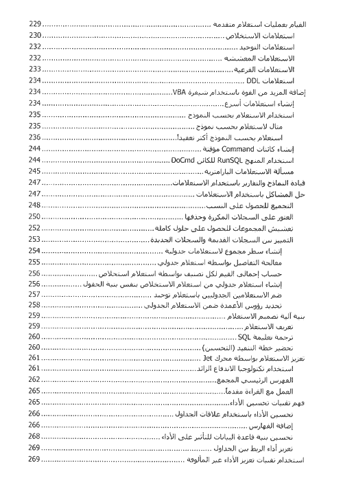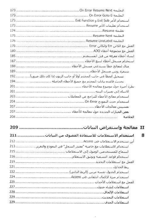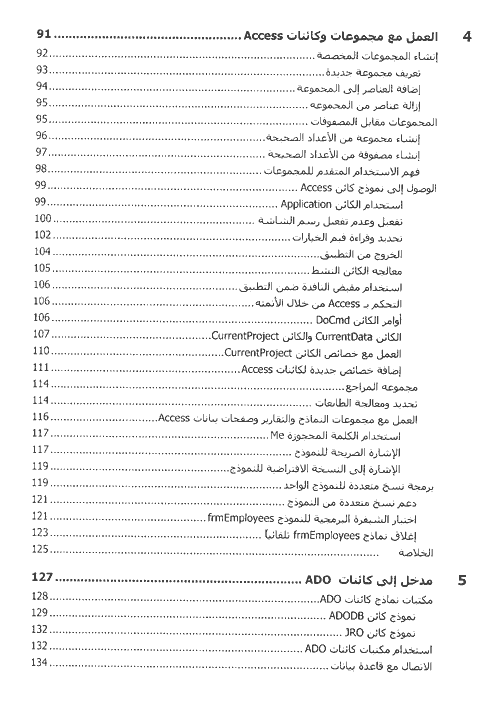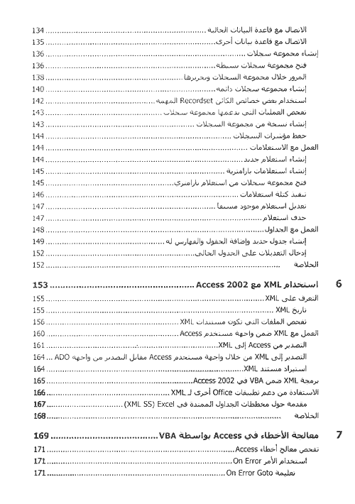 - استخدام Access في الانترنت ومع تقنيات جديدة مثل XML وصفحات بيانات Access.