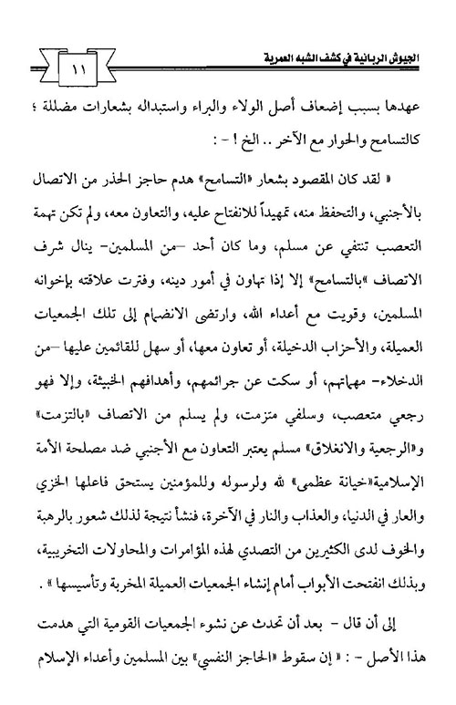 الجيوش الربانية في كشف الشبه العمرية : رسالة تتضمن حكم السفر إلى بلاد الكفار مع توضيح متى إظهار الدين