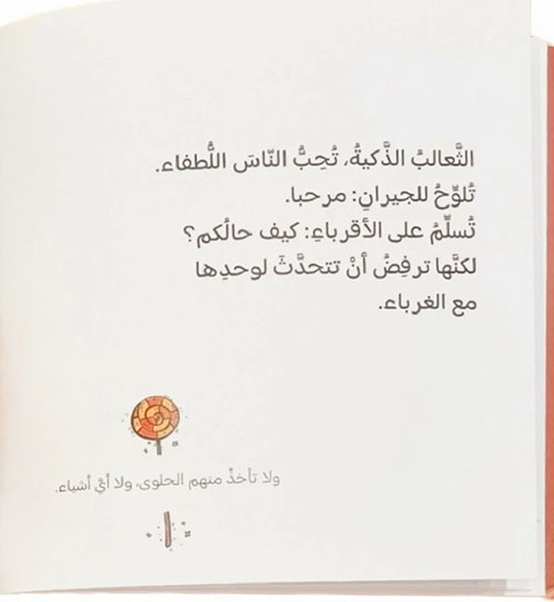 نبذة الناشر:يقدّم بعض القيم والسلوكيات الجميلة، عبر أسلوب فكاهي تتممه الرسومات برشاقة ولطافة، يشعر الطفل معها أنه يُفعّل ذكاءه التحليلي والعاطفي والاجتماعي. فالثعالبُ الثلاثة ذكية جدًا، تحبّ أن تتمتع بسلوكيات جميلة حتى لو كانت تصرفاتها في بعض الأحيان مخالفة لما ترغب أن تكون عليه.