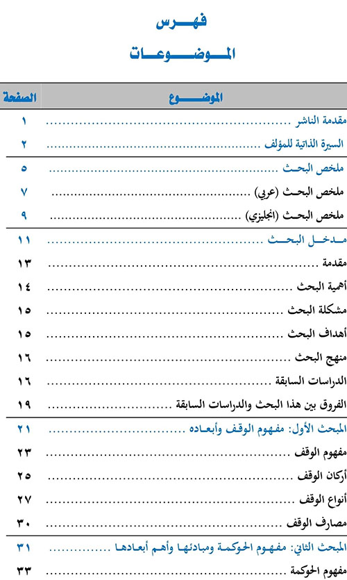نبذة الناشر:بينت الدراسة دور الحوكمة في تطوير العمل الوقفي؛ باعتباره عملاً مؤسسياً؛ وانعكاسها إيجابياً على استدامة المؤسسات واستمراريتها، وأهمية الحوكمة للجهات غير الربحية ومن أهمها المؤسسات الوقفية لتحقق الأمن لعملها المؤسسي، وتحافظ على نموها، ولتتجنب الأخطاء القانونية أو المالية، ولتحفظ حقوق الأطراف ذات العلاقة، وترسخ الشفافية والإفصاح والمساءلة والمسؤولية، وتزيد من ...دورها في زيادة كفاءة استخدام الموارد وتعظيم قيمة الوقف وأثره. إقرأ المزيد