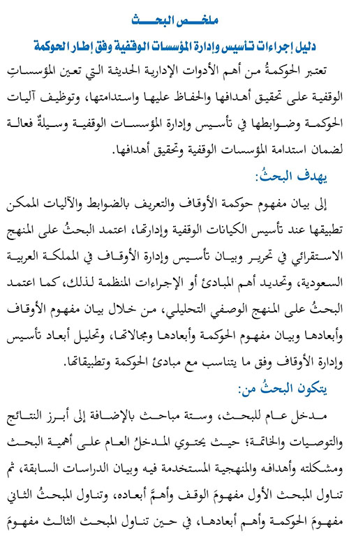 دليل إجراءات تأسيس وإدارة المؤسسات الوقفية وقف إطار الحوكمة