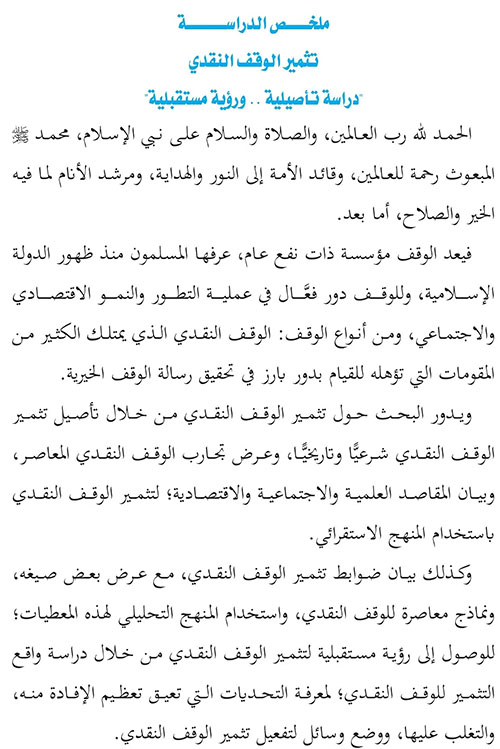 تثمير الوقف النقدي دراسة تأصيلية.. ورؤية مستقبيلية
