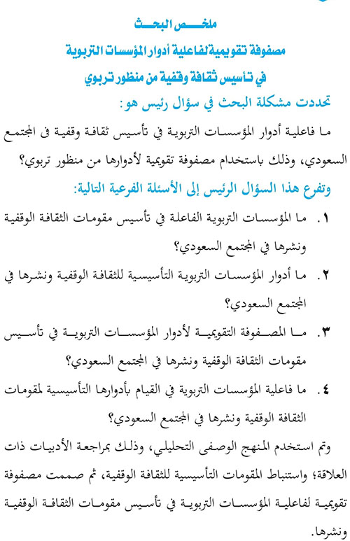 مصفوفة تقويمية لفاعلية أدوار المؤسسات التربوية في تأسيس ثقافة وقفية من منظور تربوي