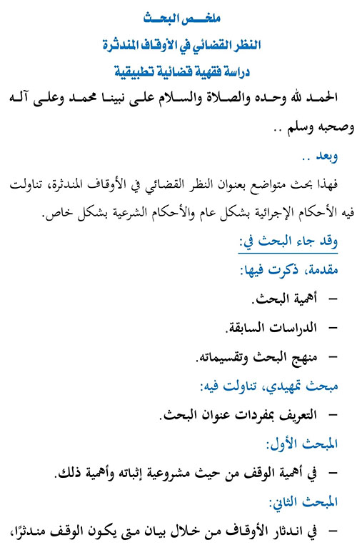 النظر القضائي في الأوقاف المندثرة - دراسة فقهية قضائية تطبيقية