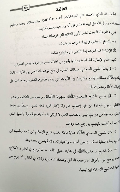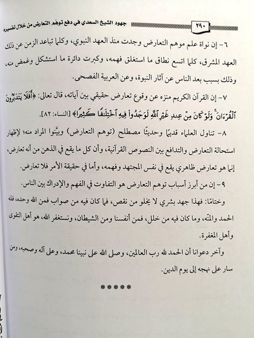 جهود الشيخ السعدي في دفع توهم التعارض من خلال تفسيره - تيسير الكريم الرحمن في تفسير كلام المنان (جمعاً ودراسةً)