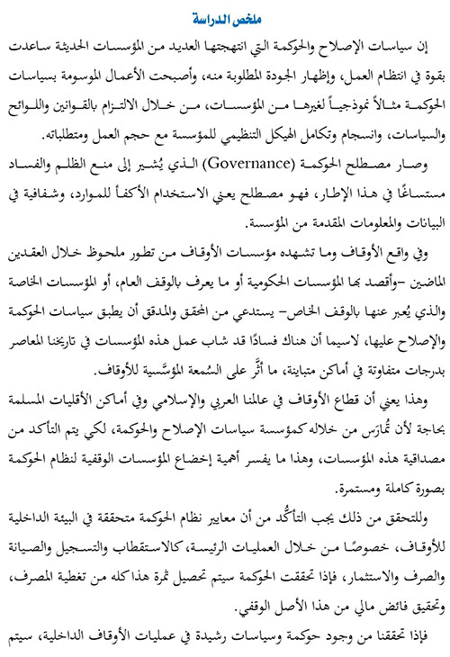 حوكمة الأوقاف وإدارة عملياتها الرئيسة ؛ معايير الشفافية والسياسات الرشيدة في تطوير أداء المؤسسة الوقفية واستثماراتها