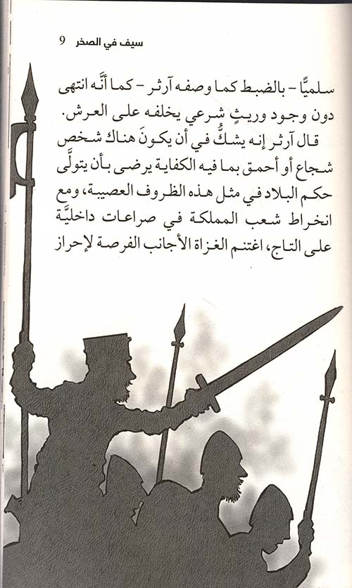 نبذة الناشر:بعد أن يقوم ولدان صغيران بإنقاذ رجل مسن من اللصوص يسمعان عن مسابقة في لوندينيوم لاختيار ملك بريطانيا التالي حينها يقرر الولد الأكبر كاي أن يثبت قدراتة ليكون فارساً أو ملكاً ا الولد الأصغر آرثر فلم يهتم إلابالزراعة إلى أن يرى السيف المغروس في الصخرة.
