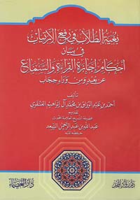 نبذة الناشر:كتاب "بُغية الطلاب" جُزء حديثي يَضَمّ بين دَفَتَيه مسألة مُعاصرة مهمة في سماع الكتاب والسنة، وتعليمهما، عن بُعد ومن وراء حجاب، وقد تميّز بذكر أظهر الأدلة وأصحها، وقد سار فَيه المؤلف الش...
