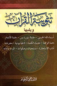 نبذة الناشر:تثويبة القرآن ويليها : أسماء الله الحسنى - ختمة سورة يس - ختمة سورة الإنعام - ختمة سورة الواقعة - حديث الكساء - أدعية يومية - مجربات آدآب الإستخارة - مستحبات وصلوات - الموت وآدآبه .