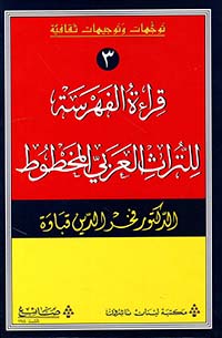 نيل وفرات:في هذا الكتاب يقدم الدكتور "فخر الدين قباوة" كل ما يضيئ سبل القيام بـ "قراءة الفهرسة للتراث العربي المخطوط "ليكون الكتاب نبراساً للعاملين في ميادين المكتبات الخطية العربية، وجاء في فصلي...