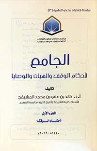 نبذة الناشر:الجامع يتكون من (ثمانية أجزاء) يتحدث عن الأحكام المتعلقة بالوقف والهبات والوصايا، وتبرز أهمية هذا الجامع في حاجة أهل العلم وعموم الناس إلى دراسة متخصصة لموضوعاته، ويدل لذلك جهل كثير من ...