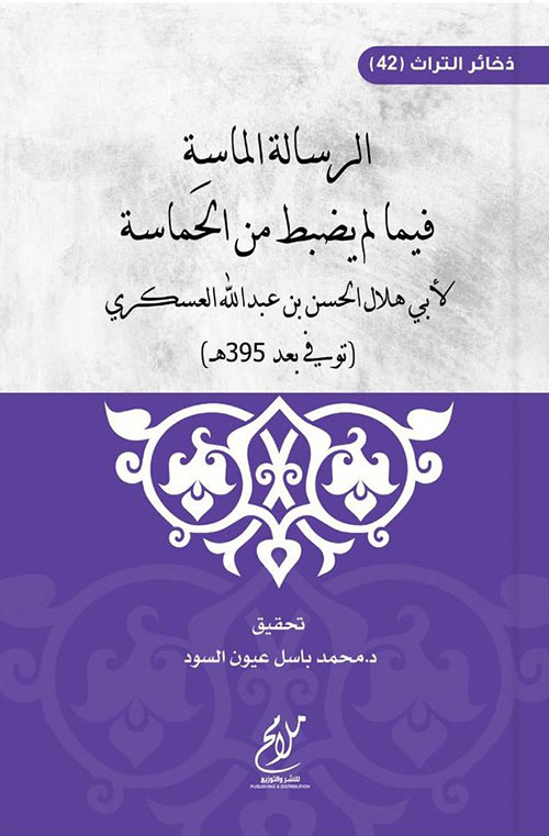 نبذة الناشر:أوضح أبو هلال العسكري سبب تأليفه هذه الرسالة، الرسالة الماسة فيما لم يضبط من الحماسة، فقد صرح في بدايتها ما دفعه إلى وضعها بقوله: "مرّ بي في نسخة الحماسة بخط بعض أجلاء الشيوخ، وذكر أنه ...