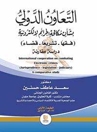 "يتضمن هذا الكتاب التعاون الدولي بشأن مكافحة الجرائم الإلكترونية ( فقهاً – تشريعاً – قضاءً ) ""دراسة مقارنة"" ( دور الفقه الدولى فى مكافحة الجرائم الإلكترونية - دور منظمة الأمم المتحدة ...