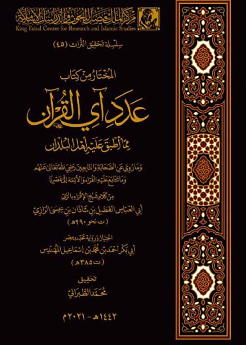 من سلسلة تحقيق التراث يأتي الكتاب الخامس والأربعين الذي يختص بموضوع عدد آي القرآن الكريم وهو أحد فروع العلم المعروف بعلوم القرآن ، والكتاب من الكتب النادرة في مجاله حيث يعود للقرن الثال...