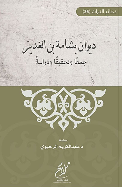 نبذة الناشر:شعر بشامة بن الغدير فلم يكن متاحاً، اللهم ما جمعه الأستاذ عبد القادر عبد الجليل في مجلة المورد في سبعينيات القرن الماضي .