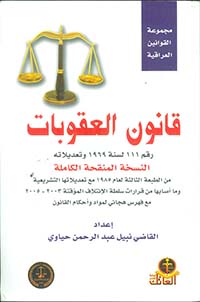 نيل وفرات:نقدم هذه الطبعة الجديدة المنقحة والمصححة والكاملة من قانون العقوبات مع جميع التعديلات عليه والتشريعات الملحقة به، نهيب بالأخوة الأفاضل، السادة القضاة وأعضاء الإدعاء العام، حصن العدالة ا...