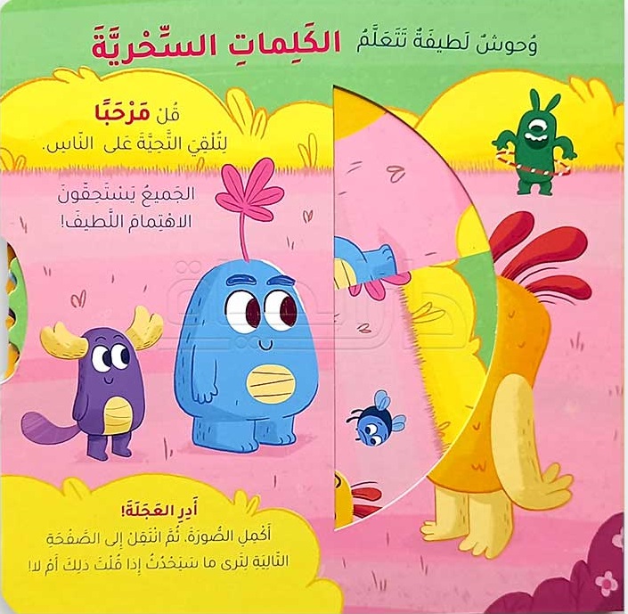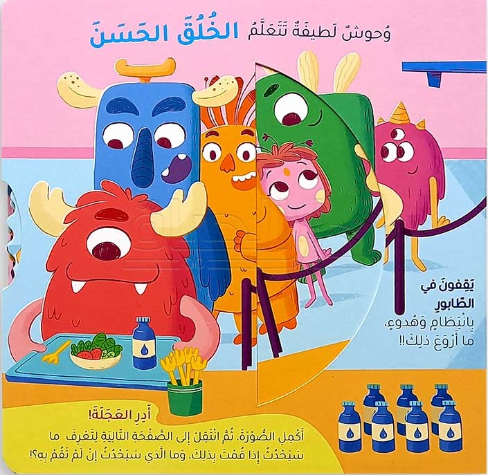 نبذة الناشر:كتاب تفاعلي بإخراج مميز. له دولاب يحركه الطفل فيقلب النتيجة؛ ليتعلم السلوكيات الصحيحة ويعمل بها .. أبطاله وحوش ملونة تشبه الأطفال في تصرفاتها.