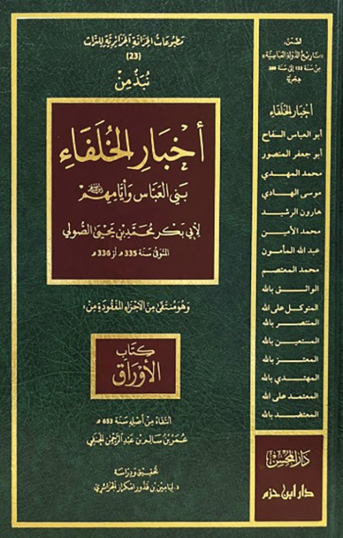 نيل وفرات:وصف ابن النديم كتبا الأوراق في كتابه الفهرست فقال "انه لم يتم والذي خرج منه أخبار الخلفاء بأسرهم، وأشعار أولاد الخلفاء وأيامهم من السفاح إلى أيام ابن المعتز أشعار من يفي من بني العباس م...