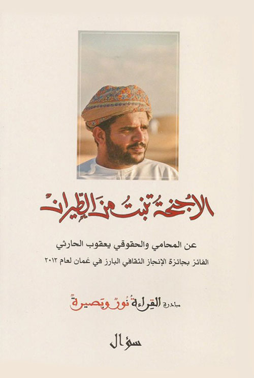 يعد كتاب "الأجنحة تنبت من الطيران" بمثابة تكريم للمحامي والحقوقي يعقوب الحارثي الفائز بجائزة الإنجاز الثقافي البارز في عُمان لعام 2012.